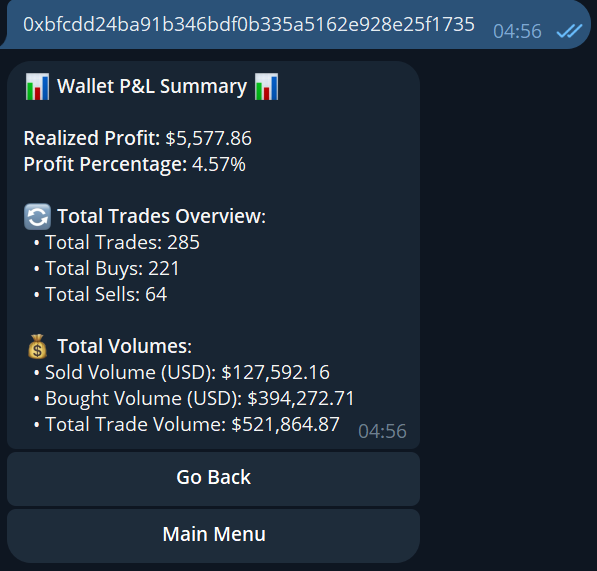 You can derive stats and wallet PNL values for any wallet you input to see exactly what you are about to copy reade, buy and sell count, wallet activity & profits made by that wallet.