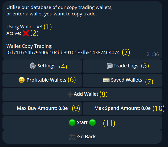 Add or change a wallet to copy-trade.