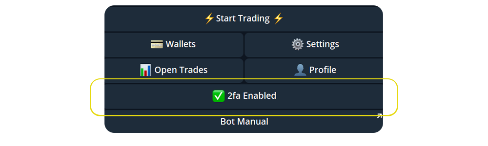 This is so that trading speed is not limited or inconvenienced by 2fa and users can trade in a fast and efficient manner while having their wallet info secured in case of Telegram compromise.
