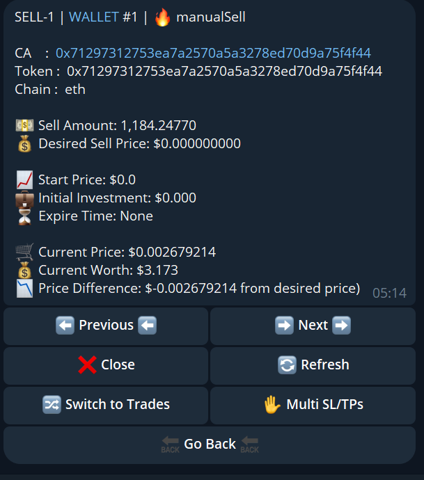 Token info and scanner links + CA, TAX, Charts, Safety MCAP ect same as in buy or sell interface settings.