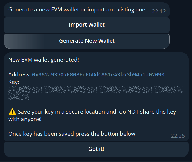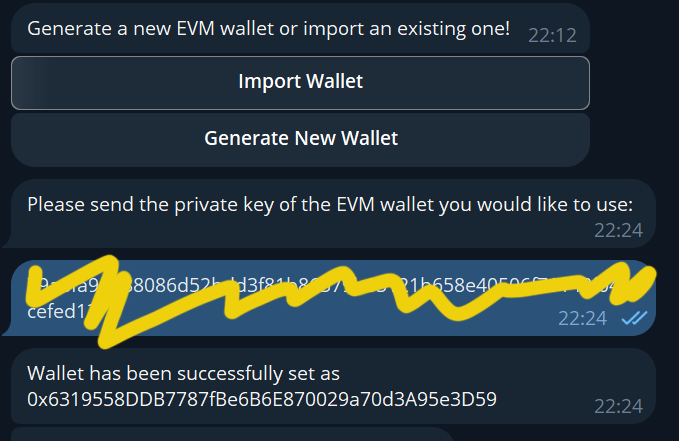Copy your private key and then paste it into the bot.