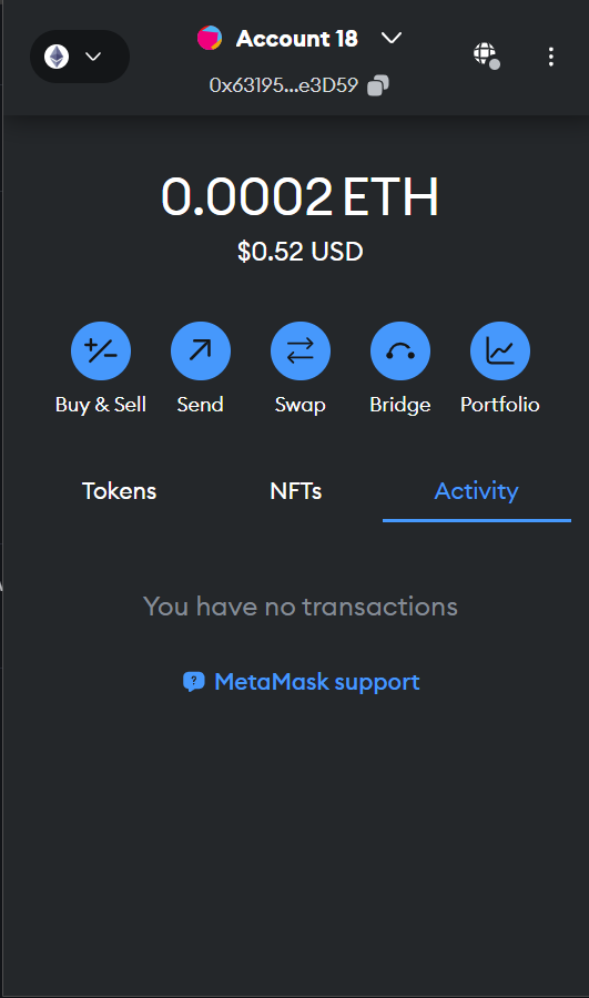 We will use Metamask as an example, but all wallets will work the same way, just different ways of retrieving credentials.