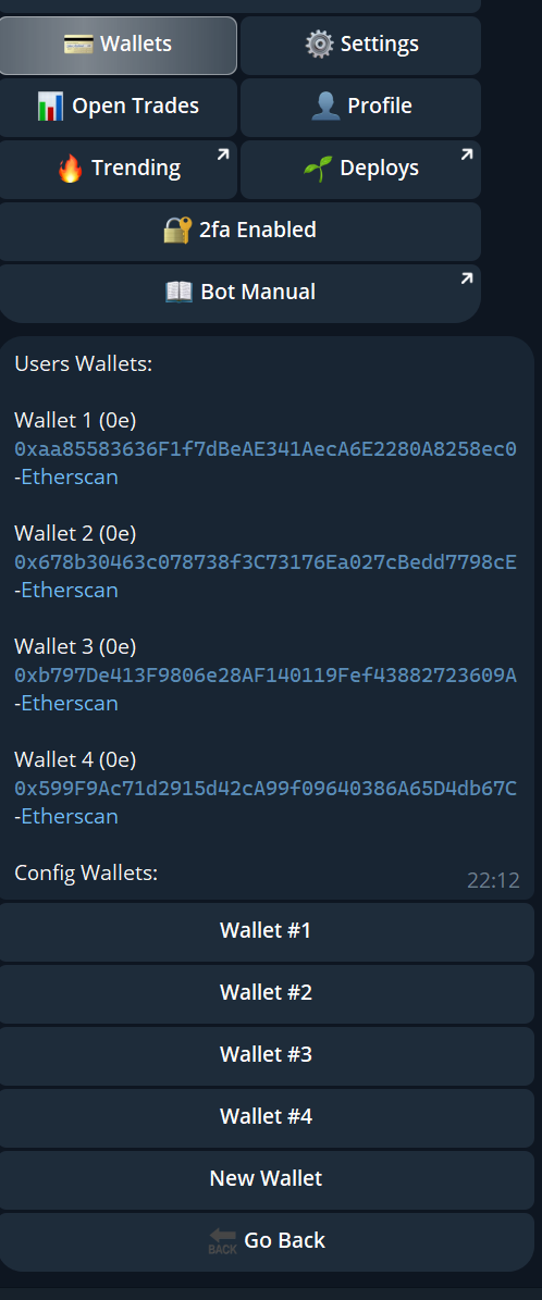 How to import and setup new wallets via the bot.